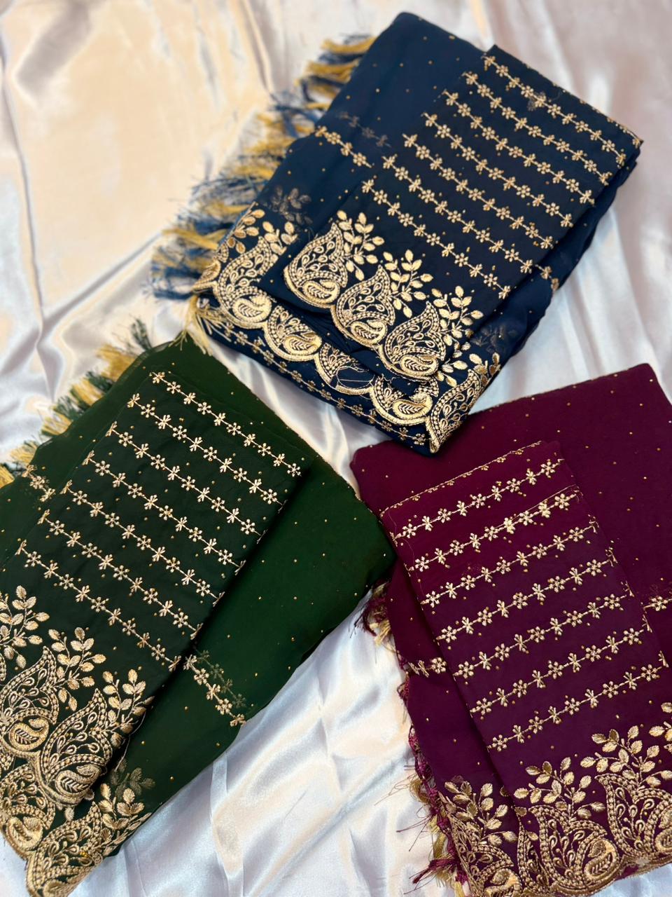 Georgette Embroidery saree with heavy zari border