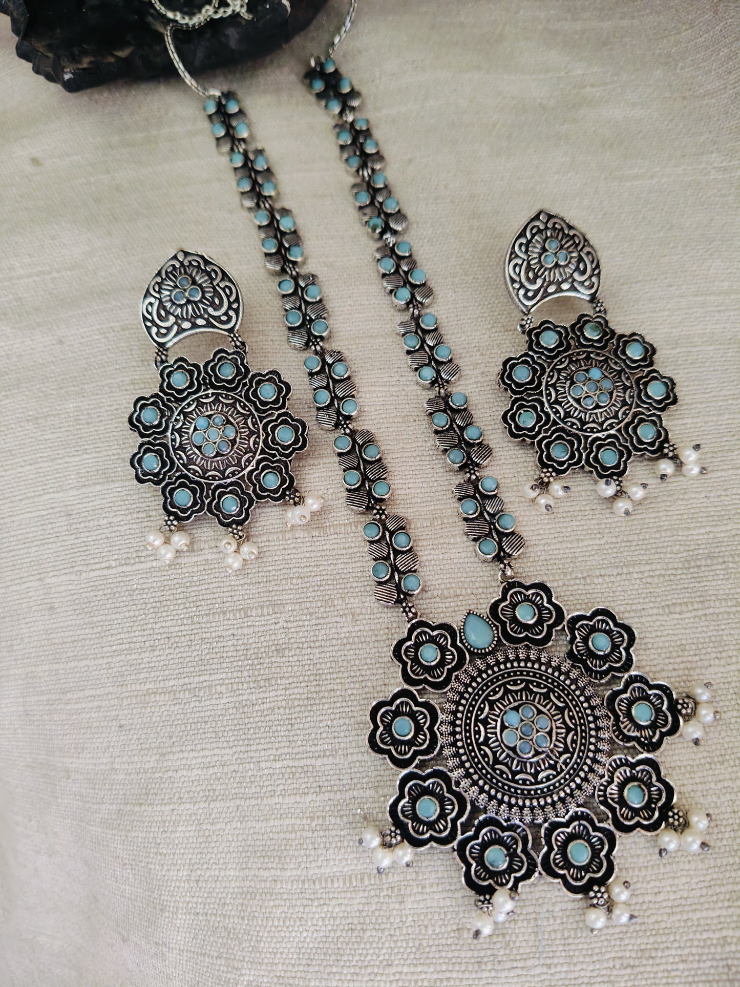 Beautiful original German silver stone necklace set with beautiful matching ear rings