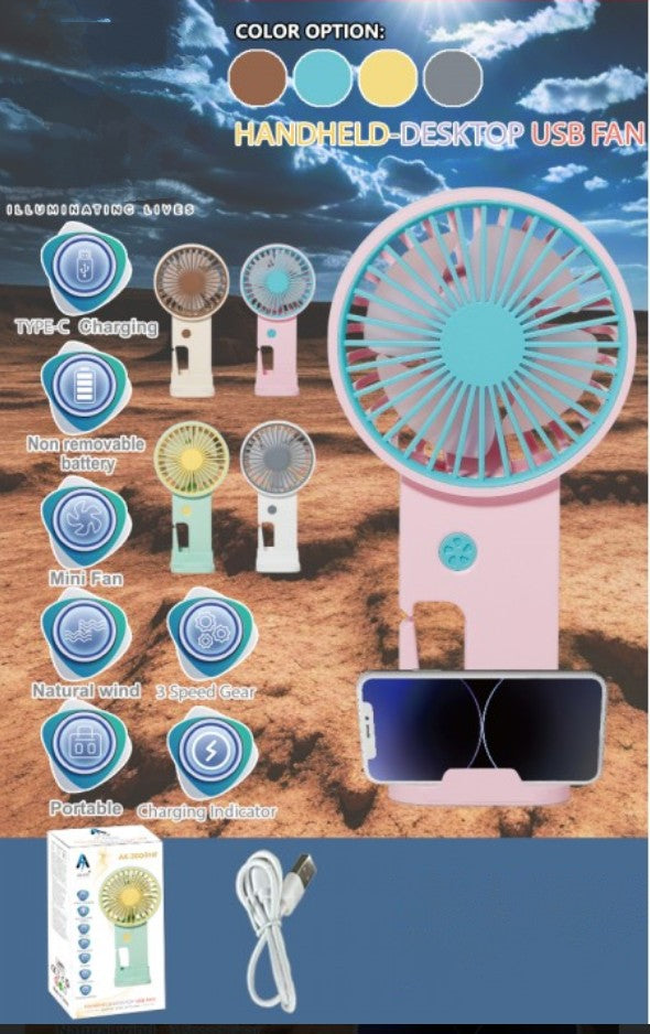 Buy the Portable Mini Fan online at Dokets.Shop—ultra-portable, USB-C rechargeable, 3-speed cooling, LED night-light, and phone holder in one! Perfect for kids, women, travel, study, and office.